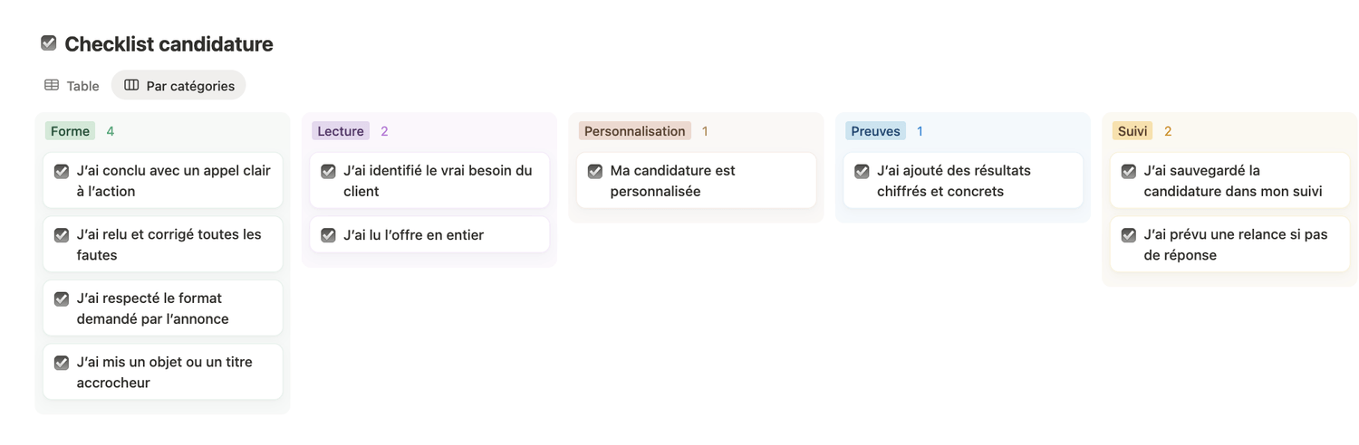 Fini les candidatures envoyées dans le vide : grâce à cette checklist, tu sais exactement quoi faire pour maximiser tes chances.