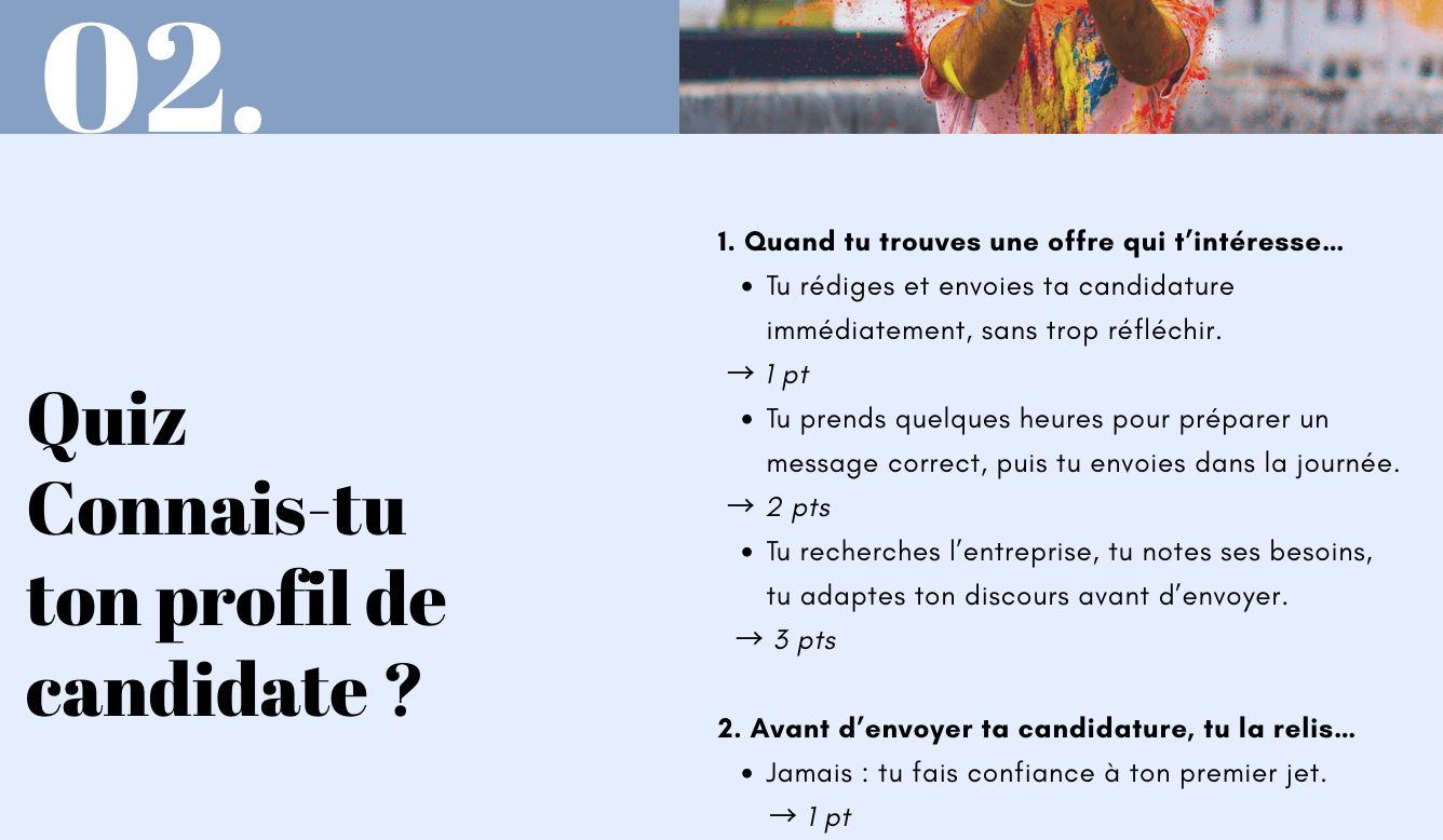Un quiz pour connaître ton profil de candidate et tes points forts